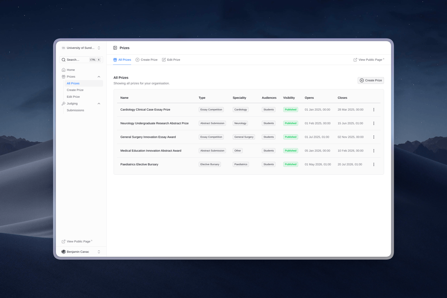 Built to streamline your society, Prizology transforms how you manage medical prizes and awards.
